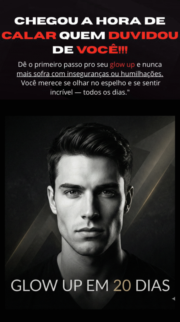 Somos um projeto criado para homens que entenderam que aparência não melhora com o tempo, melhora com estímulo certo. Não vendemos promessas milagrosas, nem fórmulas mágicas. Nosso método existe porque a maioria não sofre por genética, azar ou falta de dinheiro, mas por cuidar da aparência do jeito errado. Aqui você encontra um processo direto, sem produto físico, sem frescura e focado em resultado real — inclusive visível em até 20 dias quando aplicado corretamente. Organizamos os estímulos certos para rosto, postura e presença, baseados em padrões reais de transformação que você já viu na internet. Enquanto muitos continuam reclamando, outros escolhem agir. Nós existimos para quem escolhe agir.